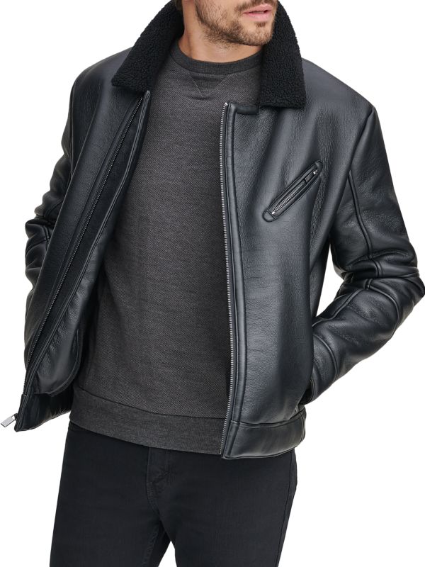 So why wait? Elevate your style and hit the road in style with our Black Leather Shearling Biker Jacket for Men. Order now and experience the ultimate combination of fashion and function!