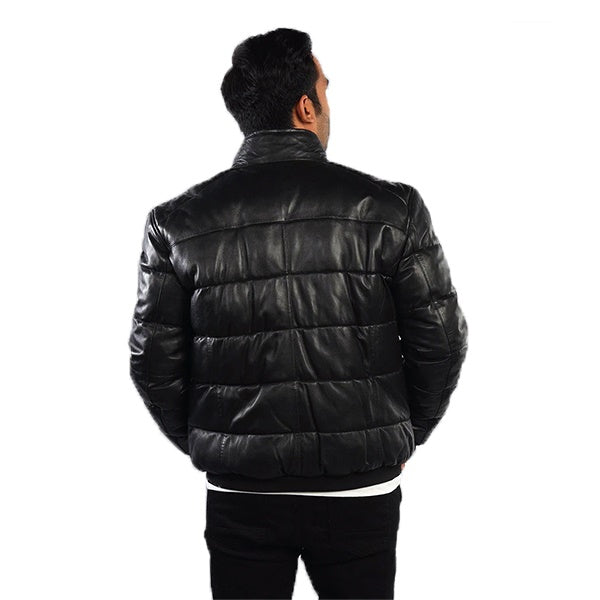 Smooth Sheep Nappa Leather takes on a classic leather puffer jacket for complete insolation. It keeps all the parts equally warm. This amazing leather quilted bomber jacket men is made with high-quality Sheep Leather which makes it durable and lightweight.