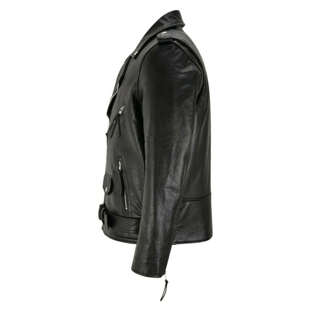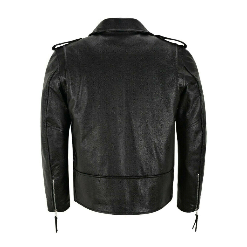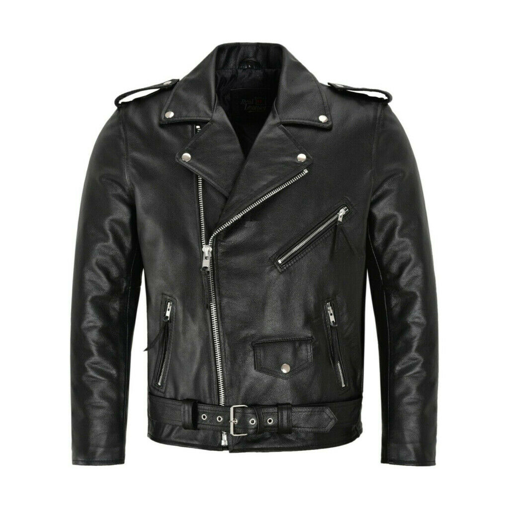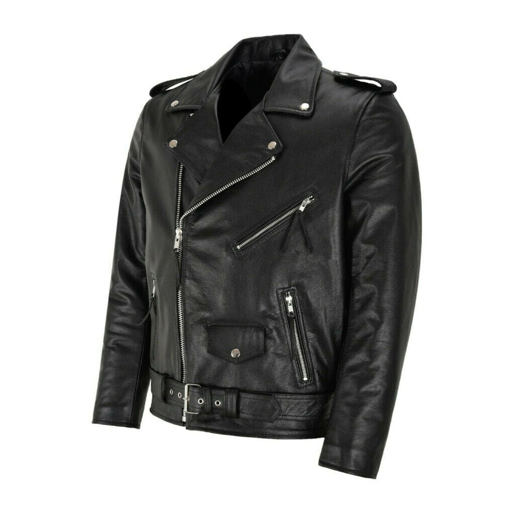 Mens Brando Leather Jacket Motorcycle Perfect Black Cow hide Biker Jacket