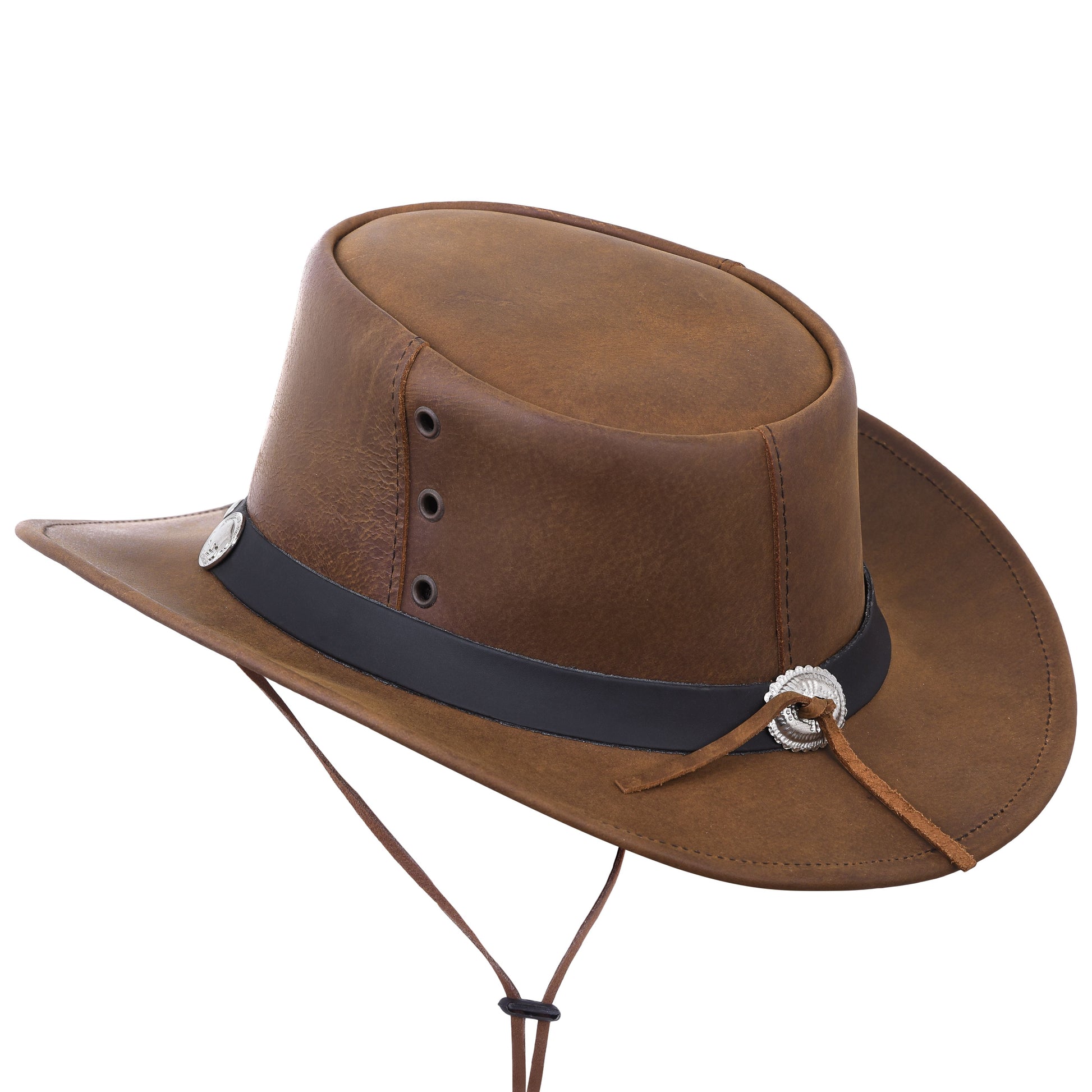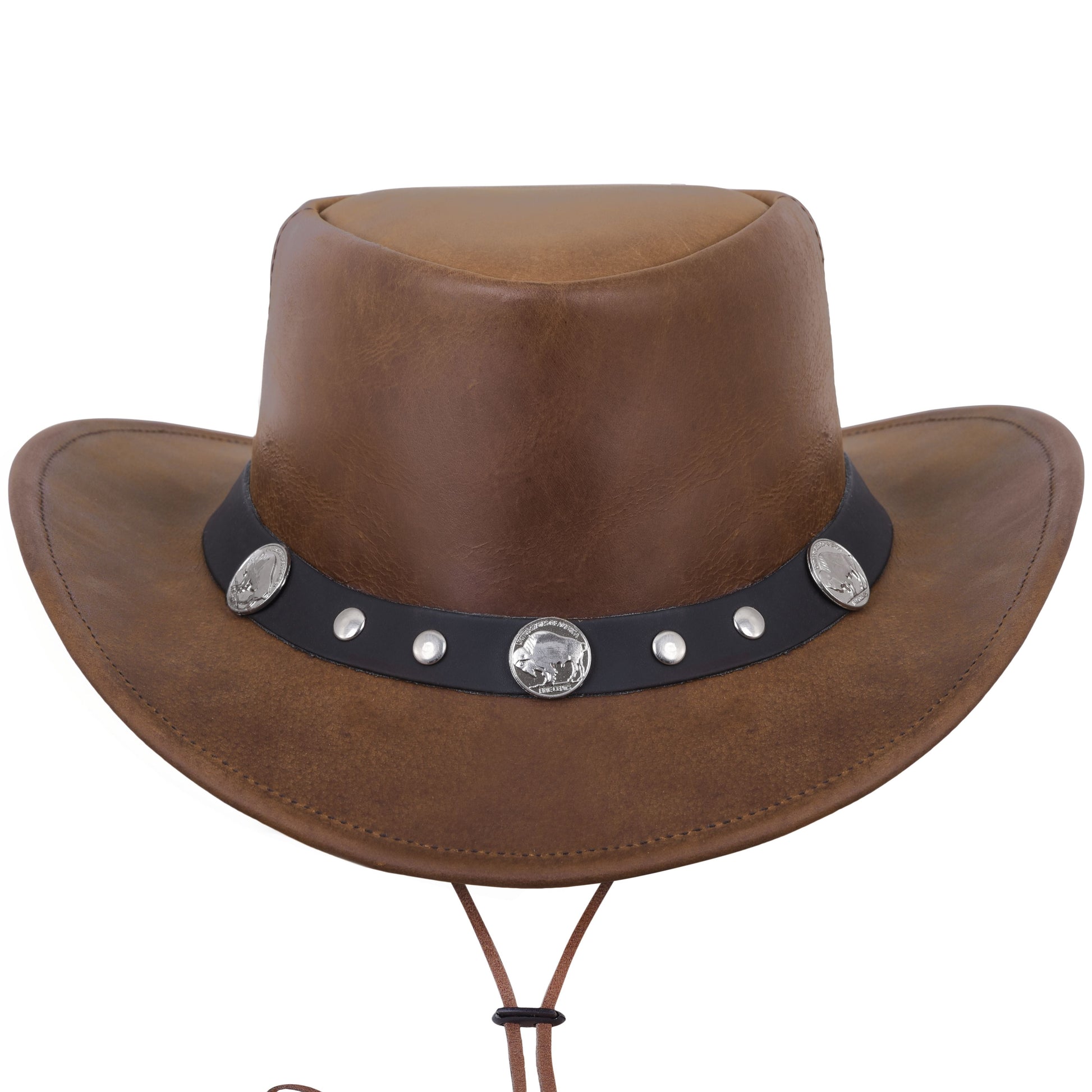 Tan Leather Cowboy Hat with Leather Conchos Hat Band