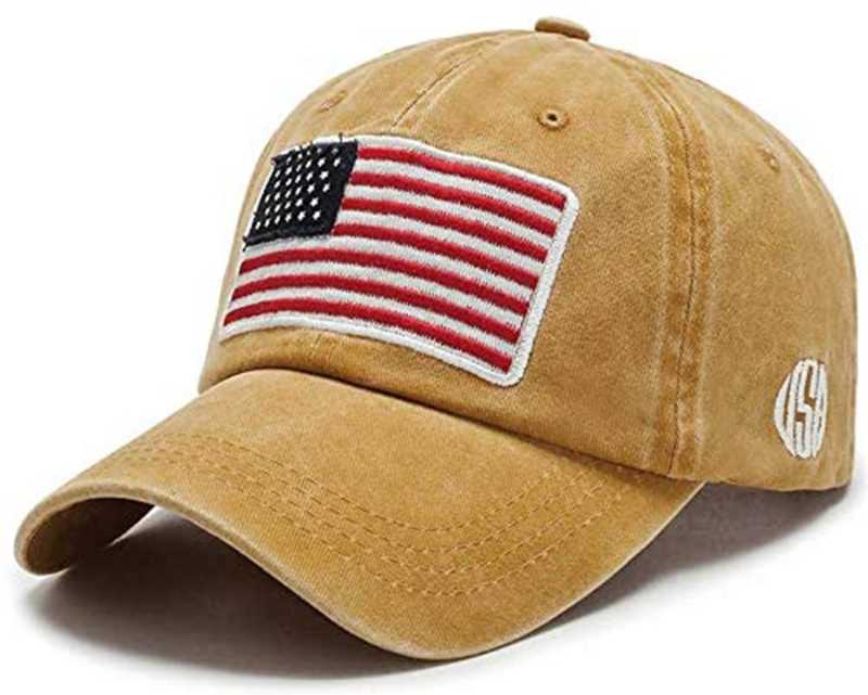 Tan American Flag Hat Soft Cotton Baseball Cap