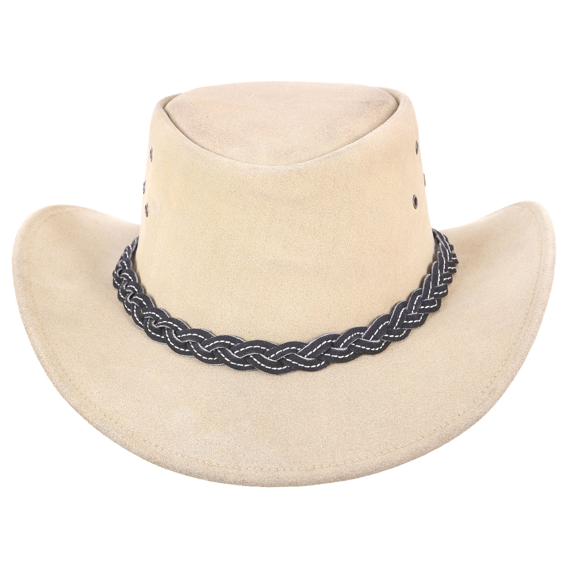 Western Leather Cowboy Hat with Braided Hat Band Australian Leather Hat