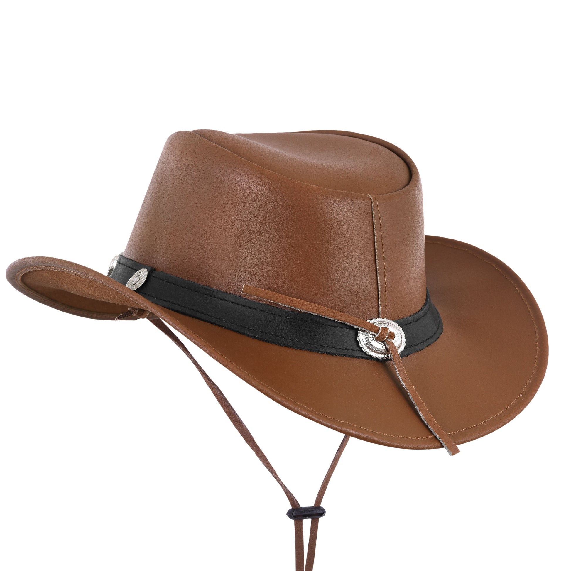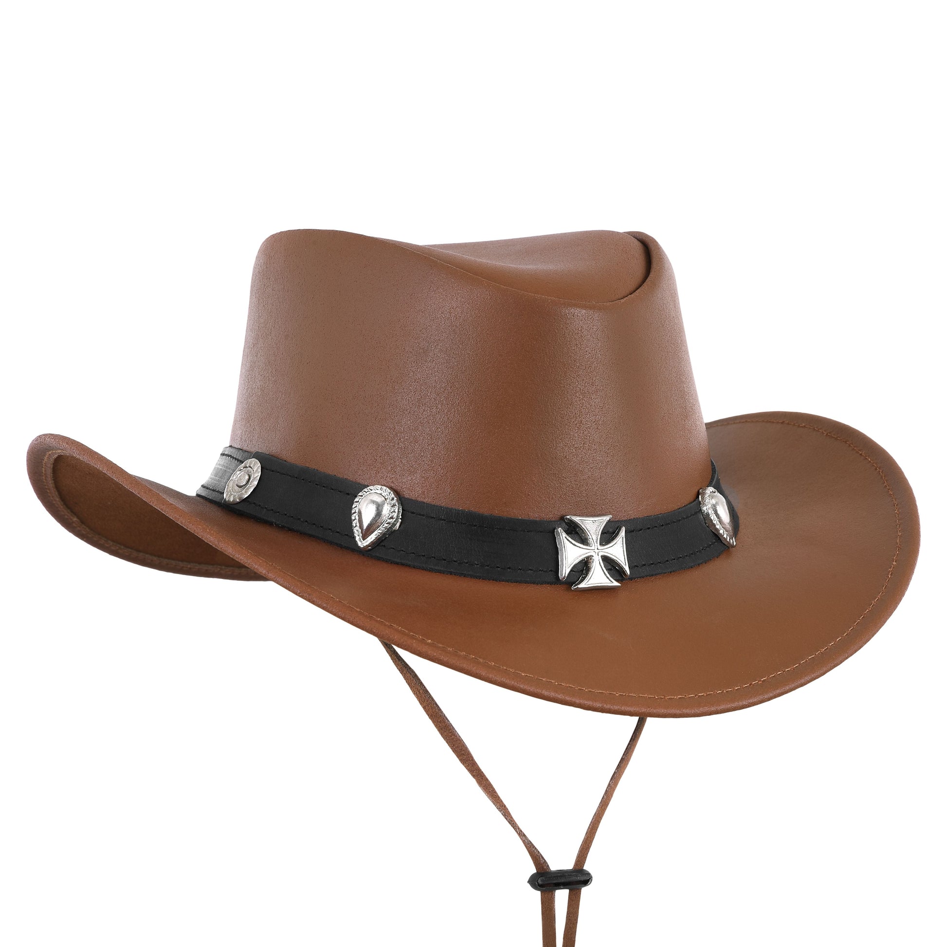 Western Style Tan Leather Cowboy Hat with Decorative Hat Band